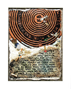 In sculpture relief and embossed prints on handmade paper, The Manhole Artist captures the essence of utility covers in their urban environments.